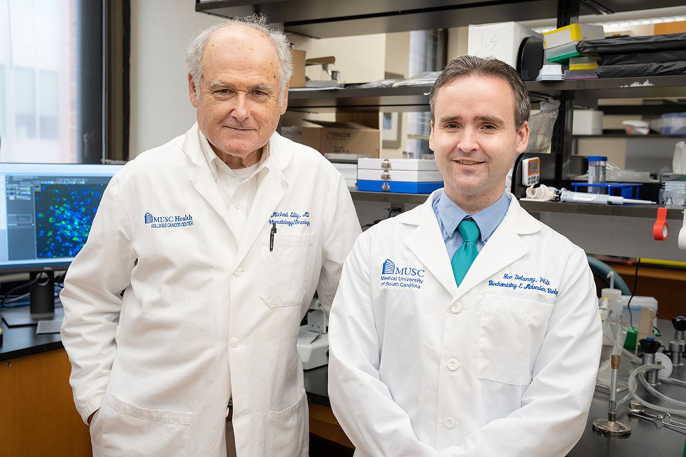 Hollings researchers Joe Delaney, Ph.D., and Michael Lilly, M.D., are collaborating on the Combination of Autophagy Selective Therapeutics (COAST) trial, which already has enrolled its first patient.
